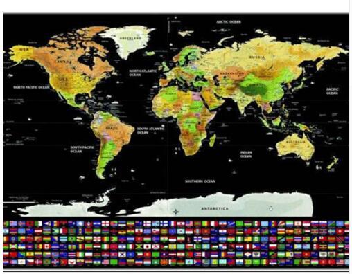- Schwarze Karte: Klassische schwarze Karte mit bunten Ländern, die unter der Folie sichtbar sind.